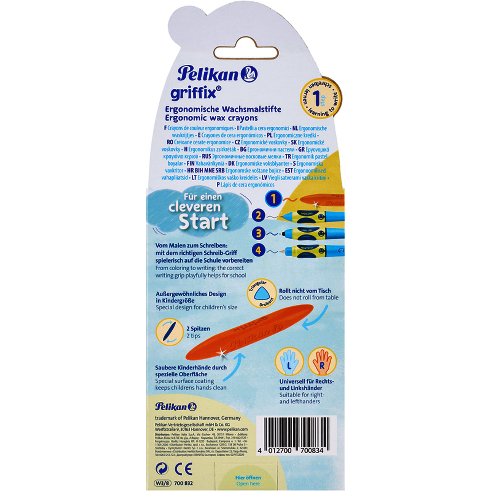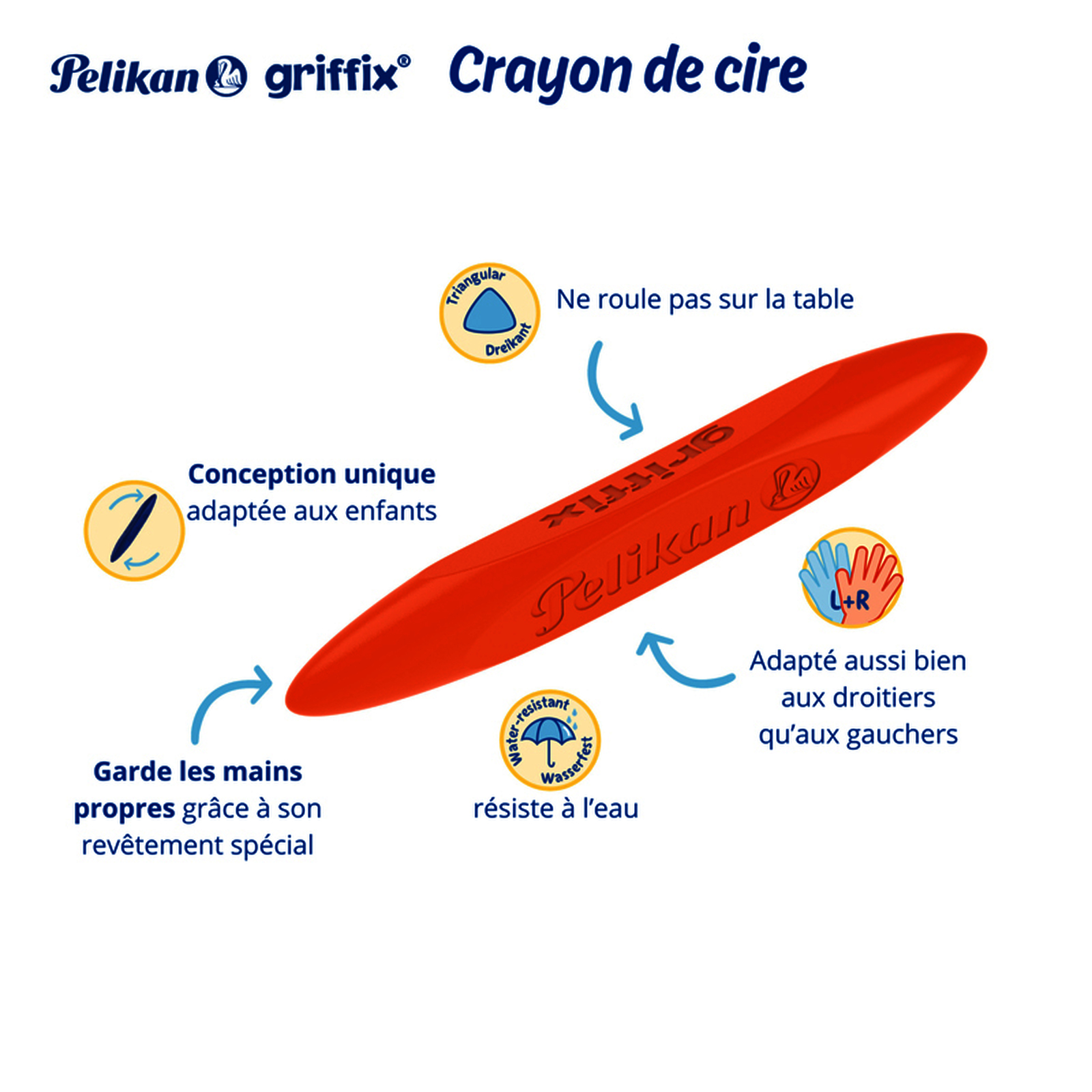 8 CRAYONS CIRE TRIANGULAIRES GRAFFIX COLORIS ASSORTIS