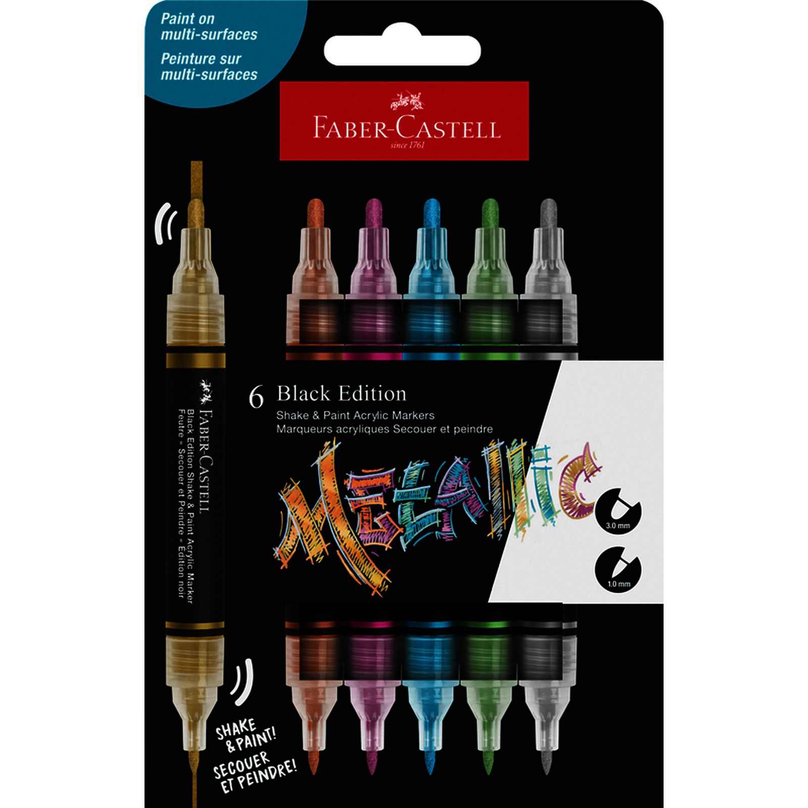 Les marqueurs acryliques Faber-Castell Black Edition sont des outils polyvalents avec une double pointe (1 mm et 3 mm) pour des d?tails fins et des aplats. Ils offrent une opacit? et une intensit? exceptionnelles sur divers supports comme le papier, le m?tal, le plastique et plus encore.