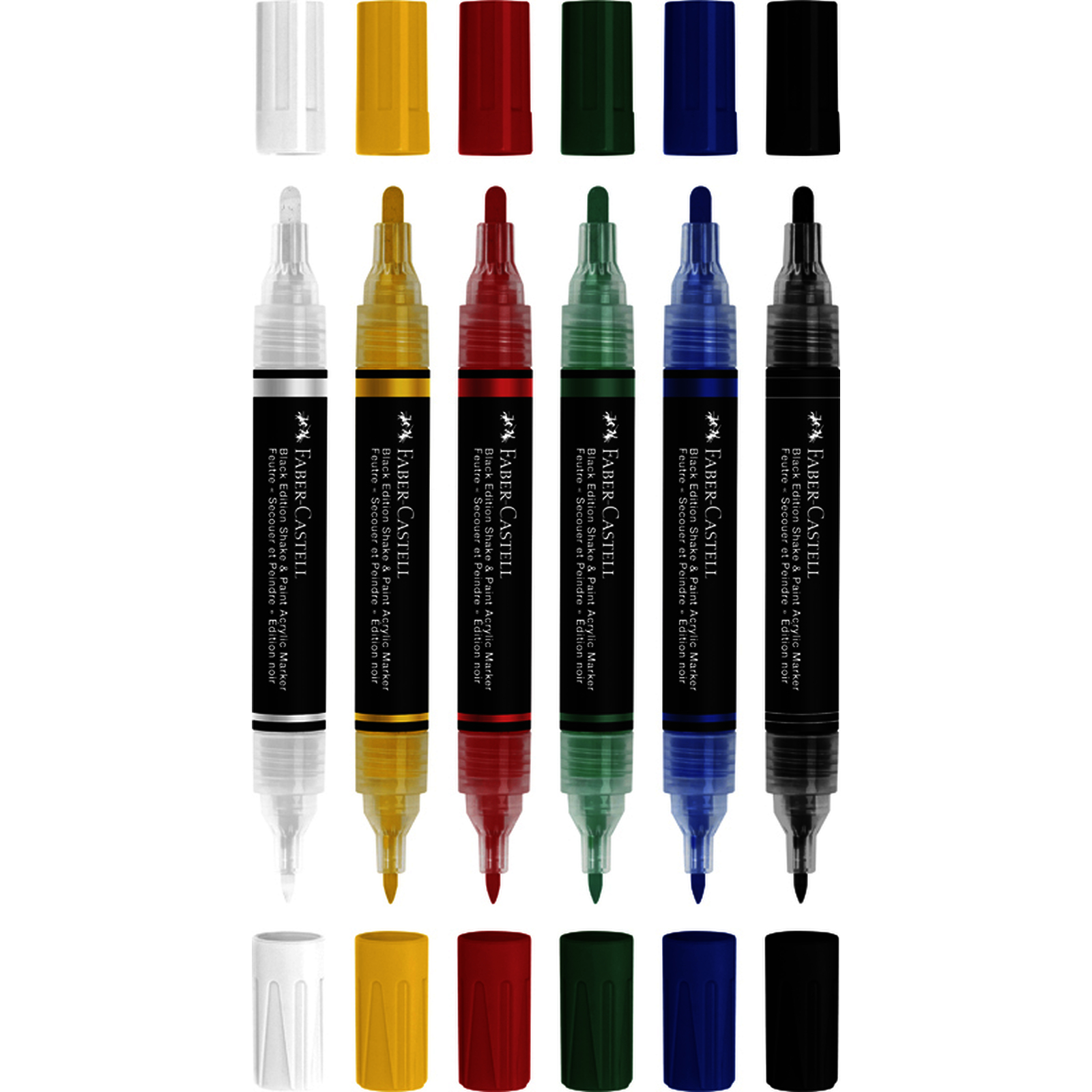 Les marqueurs acryliques Faber-Castell Black Edition sont des outils polyvalents avec une double pointe (1 mm et 3 mm) pour des d?tails fins et des aplats. Ils offrent une opacit? et une intensit? exceptionnelles sur divers supports comme le papier, le m?tal, le plastique et plus encore.
