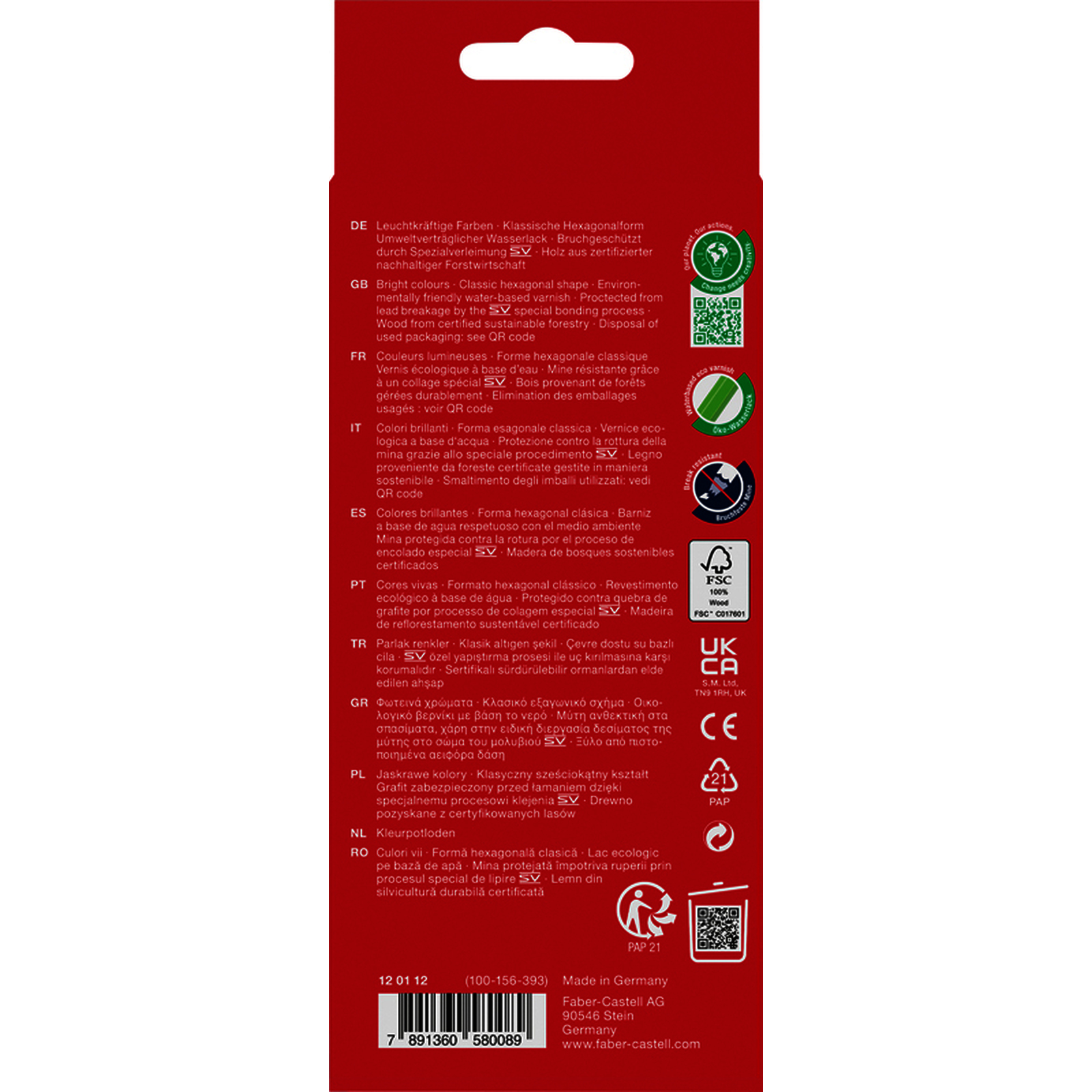 Crayons de couleur hexagonaux aux teintes ?clatantes. Leur mine solide, renforc?e par une colle sp?ciale, r?siste ? la casse et accompagne les activit?s artistiques quotidiennes en classe.