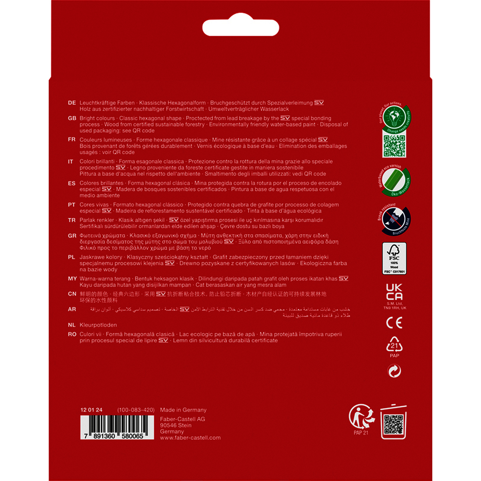 Crayons de couleur hexagonaux aux teintes ?clatantes. Leur mine solide, renforc?e par une colle sp?ciale, r?siste ? la casse et accompagne les activit?s artistiques quotidiennes en classe.