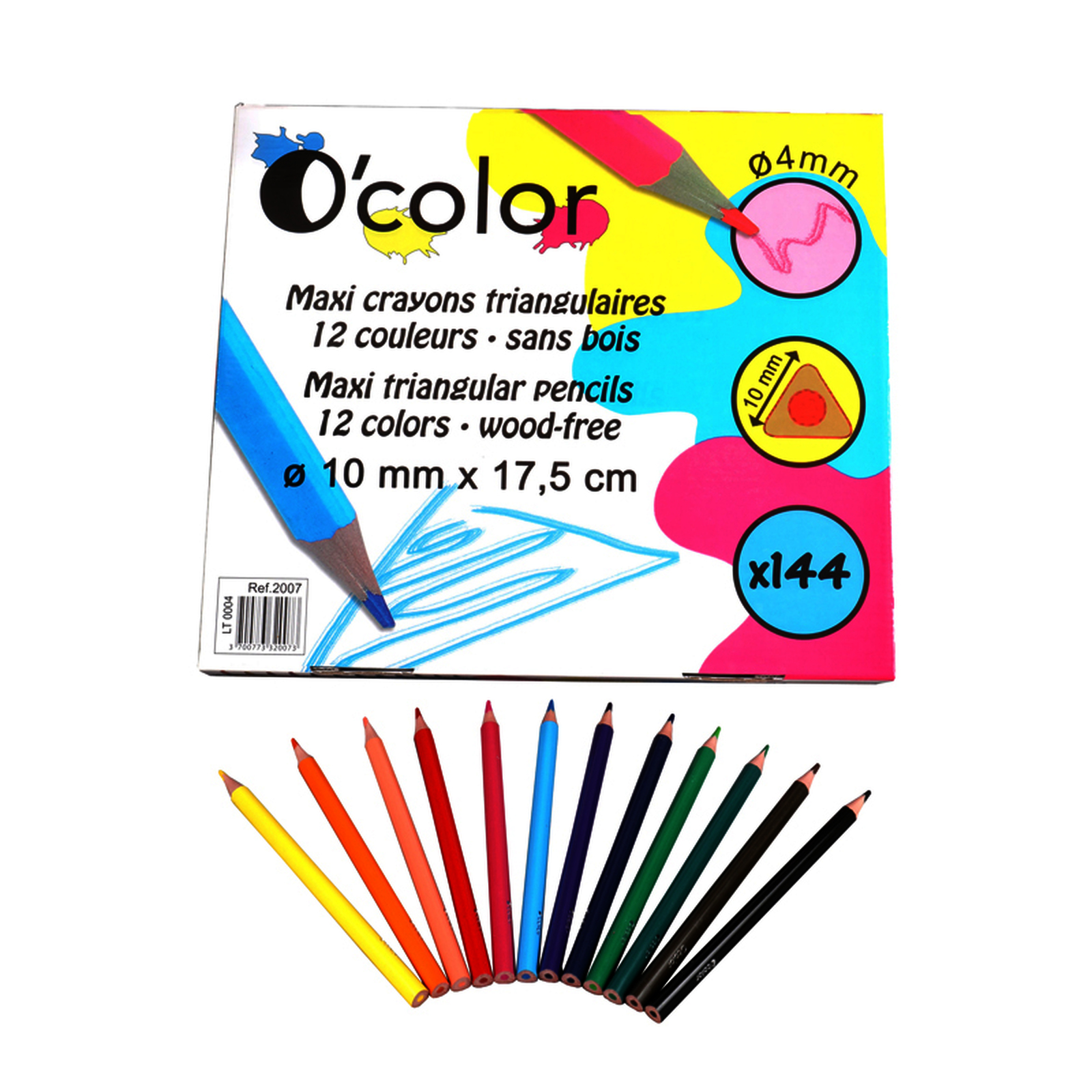 Forme triangulaire - 12 coloris - Long. : 17,5 cm - ? de la mine : 4 mm.