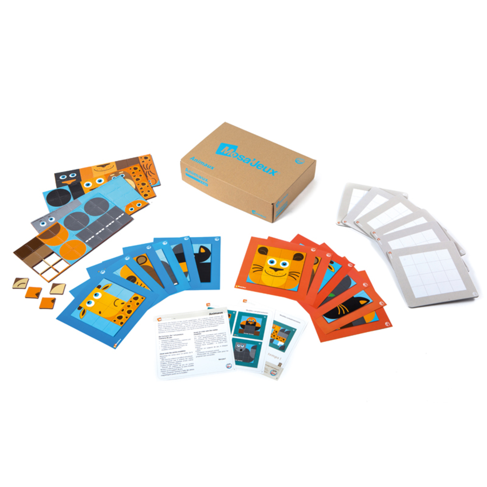 Modèles simples et colorés à reconstituer en 16 jetons. Lion, singe, girafe, éléphant...Contenu : 128 jetons couleur en mousse magnétique, 6 supports en carton ferreux quadrillé, 12 cartes avec modèles à l'échelle et 1 notice pédagogique avec des modèles supplémentairesPour 6 enfants