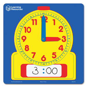 Pour lire l’heure analogique et numérique avec un espace permettant aux enfants de noter l’heure numérique. Effaçable. Aiguilles des minutes (bleue) et des heures (rouge) déplaçables. Dim. (L x l) : 30,5 x 30,5 cm - L'unité
