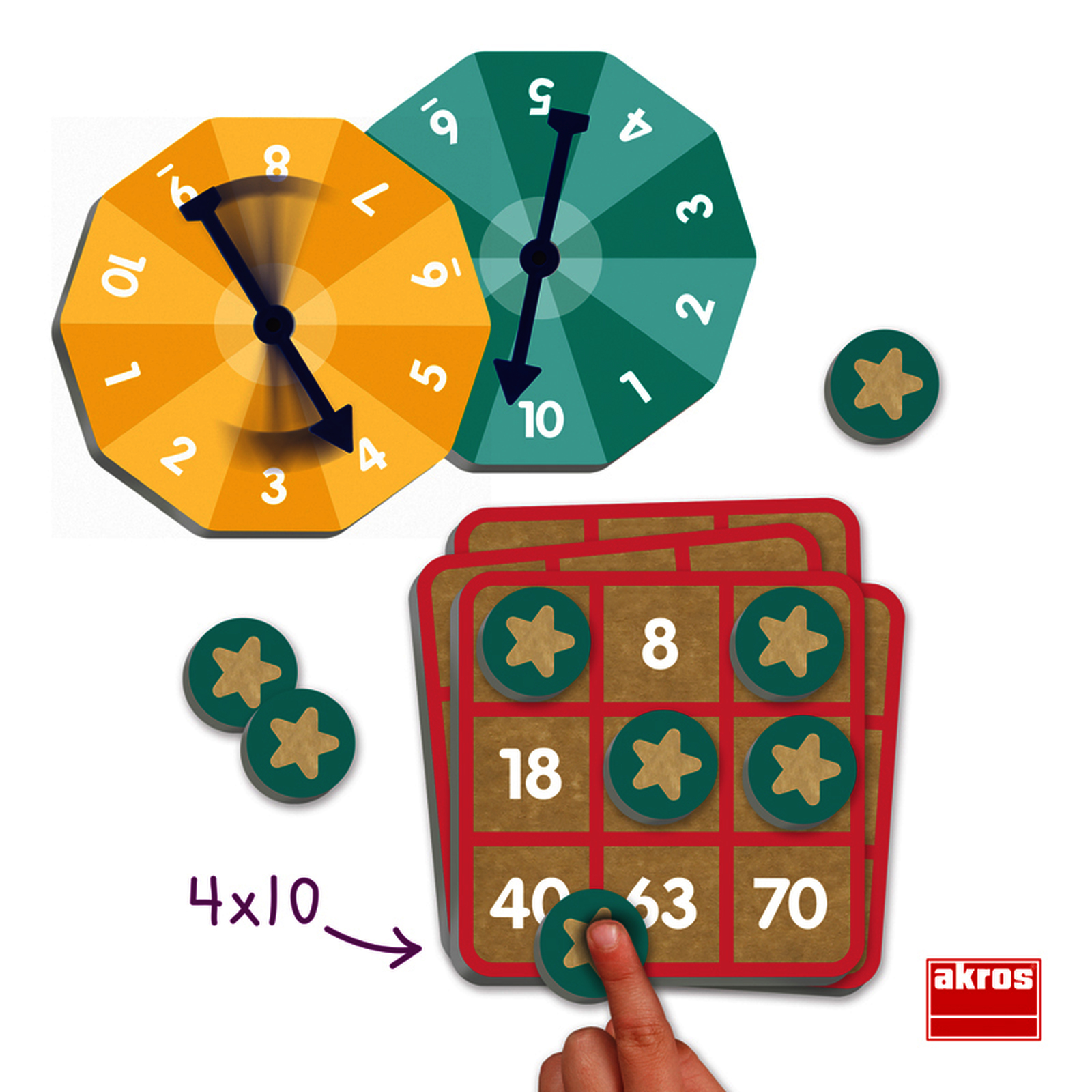 Jeu de calcul mental inspir? du bingo pour m?moriser les tables de multiplication. Avec tableau de Pythagore effa?able, roulettes ? lancer et plateaux ? compl?ter pour r?viser en jouant !
