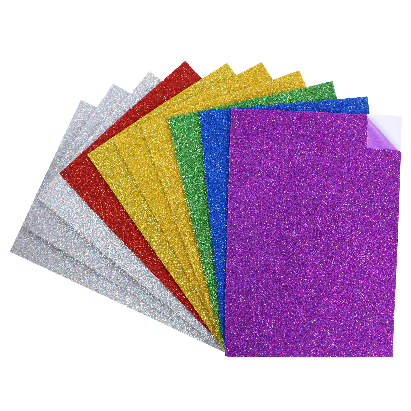 10 PLAQUES CAOUTCHOUC ADHÉSIVE PAILLETÉE 21X29,7CM COLORIS ASSORTIS